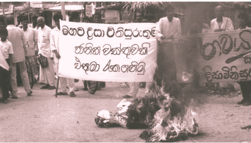 At that protest movement an effigy of 'Ravaya' editor was burnt.